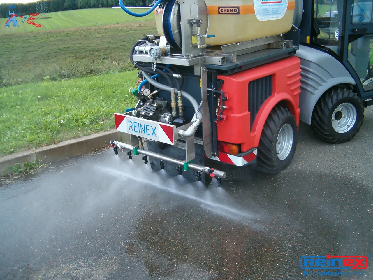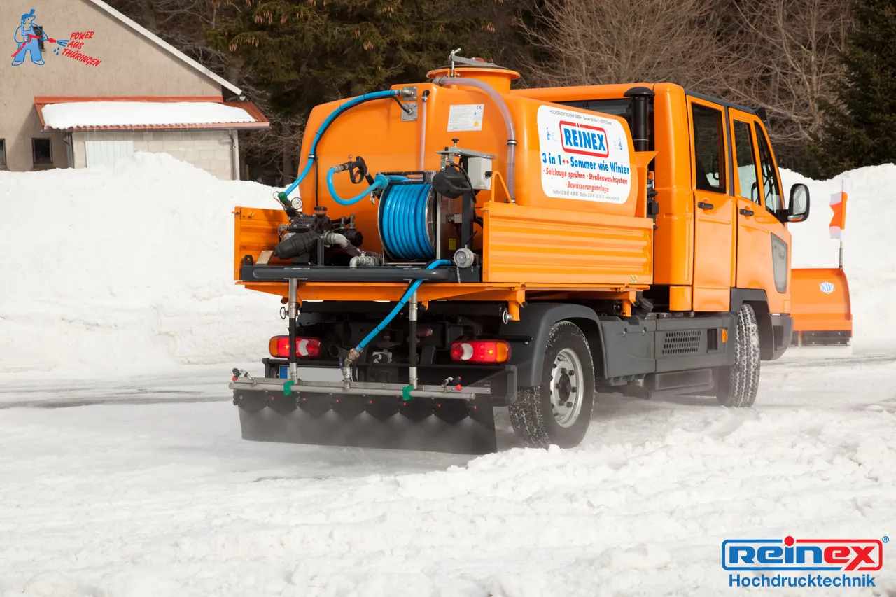 Diese Anlagen sind für eine Ganzjahresnutzung in Verbindung mit weiteren Ausstattungsgeräten geeignet. Somit ist es möglich, mit geringem Aufwand eine Laugenanlage für den Sommerbetrieb in eine Schwemm- oder Gießanlage umzurüsten. Auf Wunsch ausgestattet mit einer wegeabhängigen Regelung der Ausbringmenge inkl. Anzeige des Momentanverbrauchs und der kompletten ausgebrachten Schichtwerte. Mit den seitlichen Zusatzdüsen kann die Arbeitsbreite variiert werden